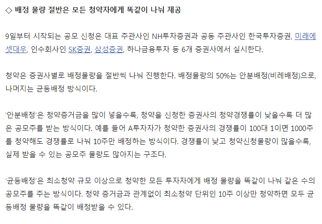 바뀐 제도에 따르면 일반 청약 물량 중 50% 이상을 균등 배분해야 한다.